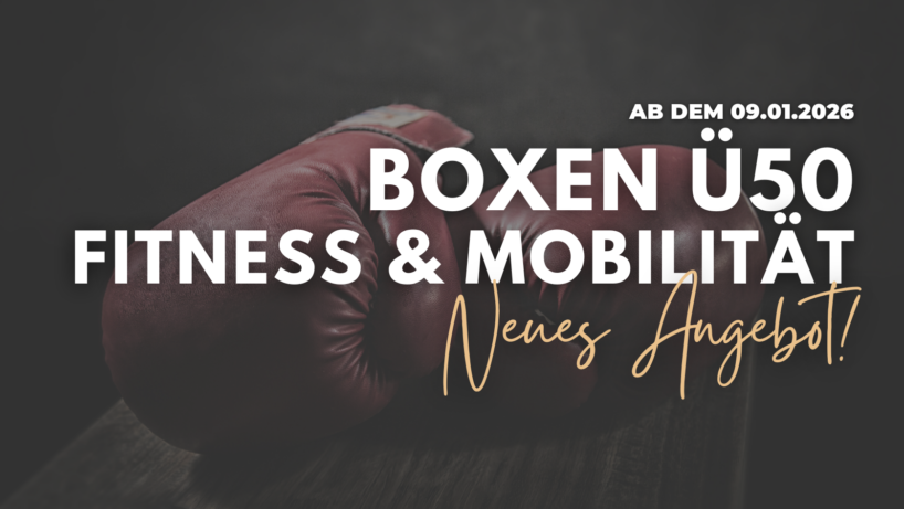 Ab 9. Januar 2026 erweitert unser Sportangebot sein Kursprogramm um ein besonderes Bewegungsangebot für Frauen und Männer ab 50 Jahren: „Fitness und Mobilität durch Boxen (ohne Kontakt)“.